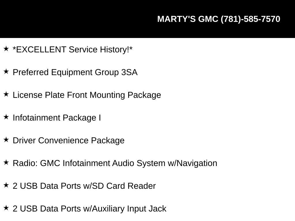 *EXCELLENT Service History!*, AWD, 110-Volt Power Outlet, 2 USB Data Ports, 2 USB Data Ports w/Auxiliary Input Jack, 2 USB Data Ports w/SD Card Reader, 4.2 Multi-Color Enhanced Driver Information Screen, 6-Speaker Audio System Feature, 8-Way Power Driver Seat Adjuster, ABS brakes, Air Conditioning, Alloy wheels, Apple CarPlay/Android Auto, Brake assist, Driver & Front Passenger Heated Seats, Driver Convenience Package, Dual-Zone Automatic Climate Control, Exterior Parking Camera Rear, Front Center Armrest, HD Rear Vision Camera, Heated door mirrors, Infotainment Package I, Lane Departure Warning System, License Plate Front Mounting Package, Low tire pressure warning, Power windows, Preferred Equipment Group 3SA, Premium Cloth Seat Trim, Radio: GMC Infotainment Audio System w/Navigation, Remote Start, Roof-Mounted Luggage Rack Black Side Rails, Split folding rear seat, Telescoping steering wheel, Tilt steering wheel, Wheels: 17 x 7 Silver Painted Aluminum.